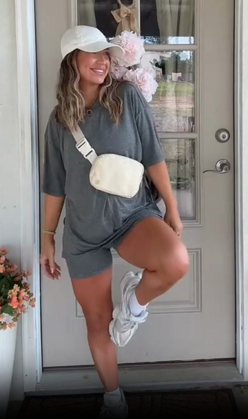 The soft, breathable fabric keeps you cool on sunny days, and the minimalist design makes it easy to dress up or down. Pair it with sneakers for errands, sandals for brunch, or just bare feet for lounging on the couch — no matter where you are, you’ll feel comfortable, confident, and effortlessly put together.